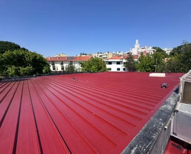 Execução e manutenção de telhados com materiais tradicionais e painéis isotérmicos para máxima proteção.
